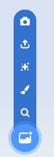 Following these two symbols is the small sparkle-like icon, which gives you a surprise backdrop. It will pick any image from the Scratch backdrop library and give it to you to use for your project.